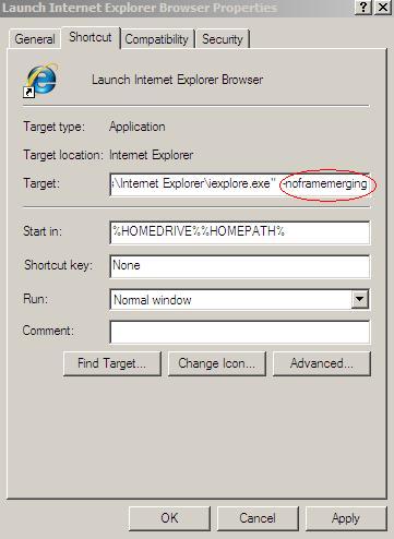 “C:\Program Files\Internet Explorer\iexplore.exe” -noframemerging